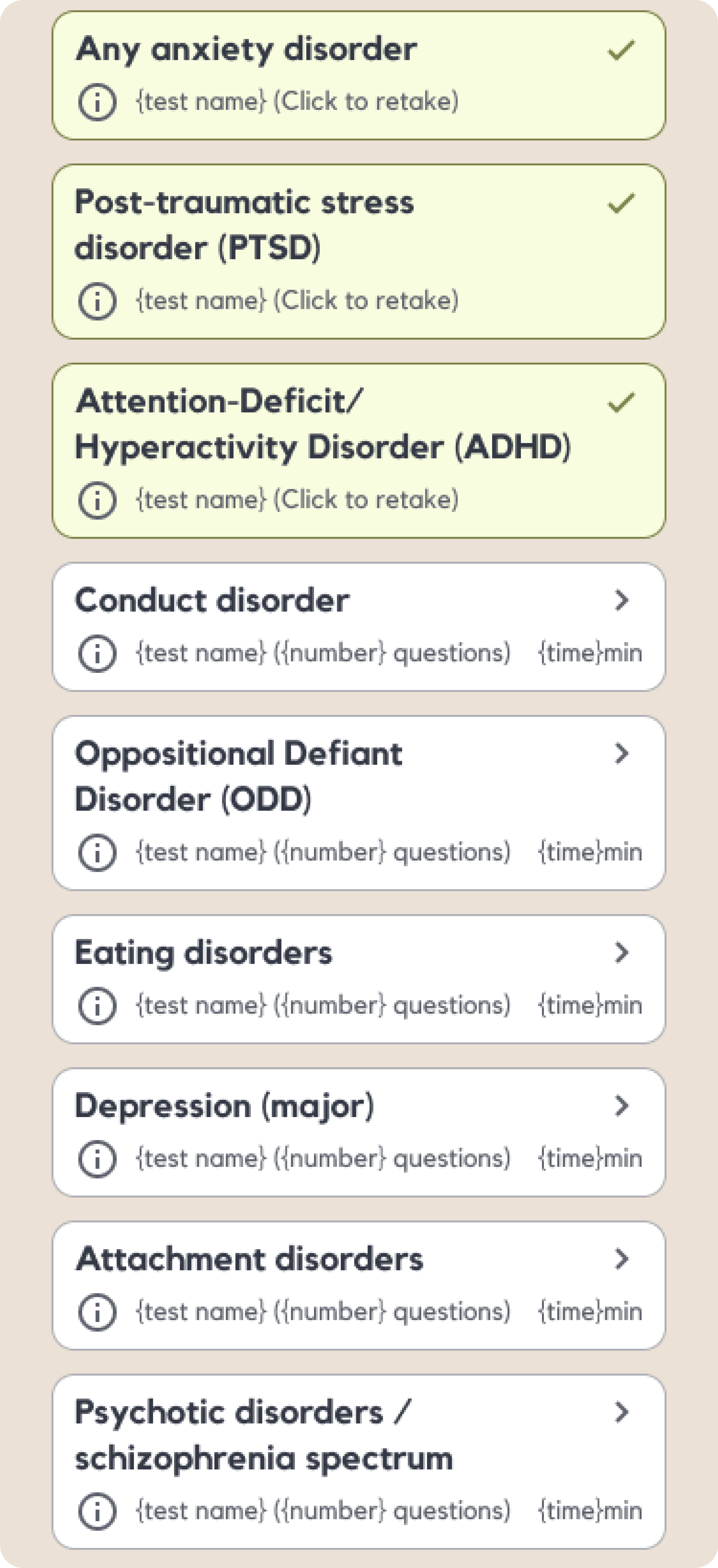 Start by taking a screening test - we provide all tests relevant to ADHD and autism for every age group. Or you can head straight to a chat with your AI-powered mentor to get answers right now. Any information you provide will train your AI mentor, so that we can help you in the best way.